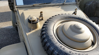 Ho ultimato la pittura della Kubelwagen , usando vari colori a pennello per gli interni , mentre sulle porte e sulla ruota di scorta ho dipinto le stelle bianche sul fondo color verde oliva , ho eseguito il chipping e le scrostature con il solito 822 della Vallejo . I colori sono ancora molto puliti , varieranno dopo la weathering .