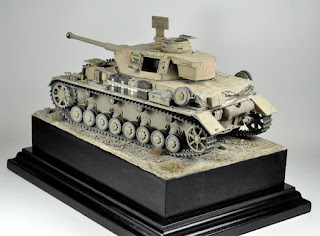 Questo è l'ultimo lavoro da me eseguito , sono un fan della Tamiya anche se non disdegno altre marche : RFM , Takom , Dragon , Border ed altre ...tornando al PZ IV è stato un vero piacere montarlo sempre a livello Tamiya , facile da montare senza problemi , ho cambiato i cingoli con quelli Friulmodel ed i cavi con i Karaya ....poi ho autocostruito dei teli con Magic Sculpt anche la base è fatta con Magic Sculpt con l'aggiunta di vari sassolini ed alcuni ciuffi "d'erba"desertici . I segnali direzionali sono Model Victoria infilati nel fusto da 200 litri Tamiya . Una cosa molto importante per me è la basetta costruita e dipinta di nero dal caro amico Alessandro Schirone .
